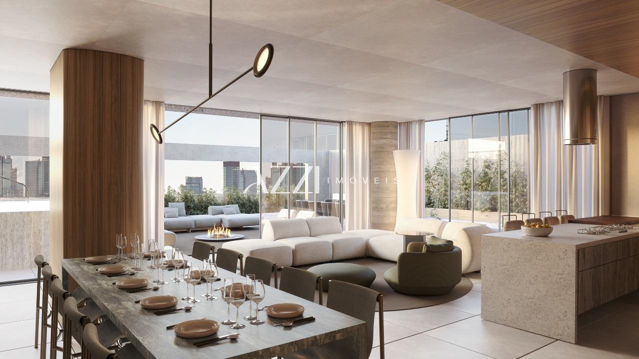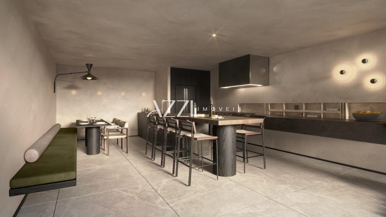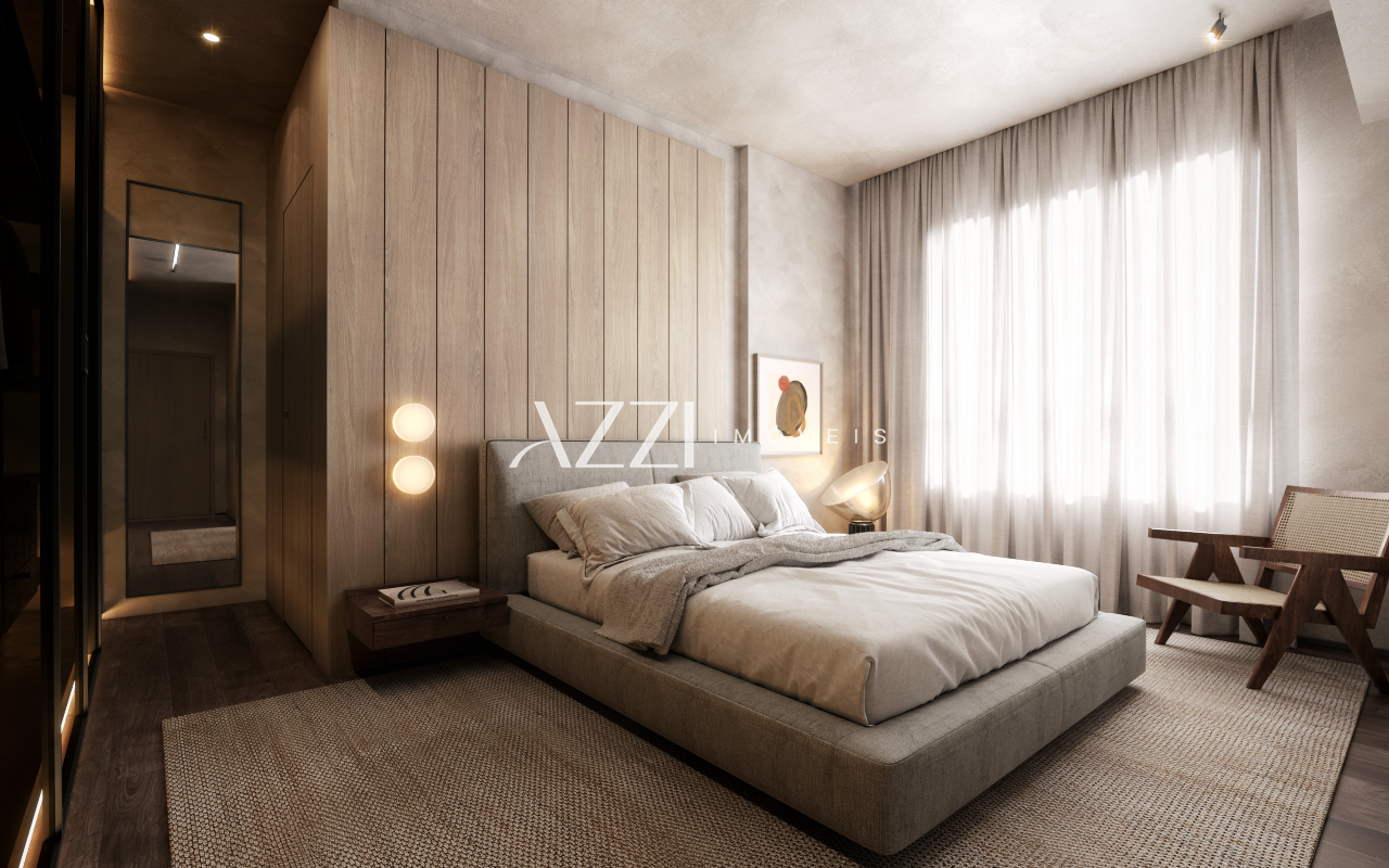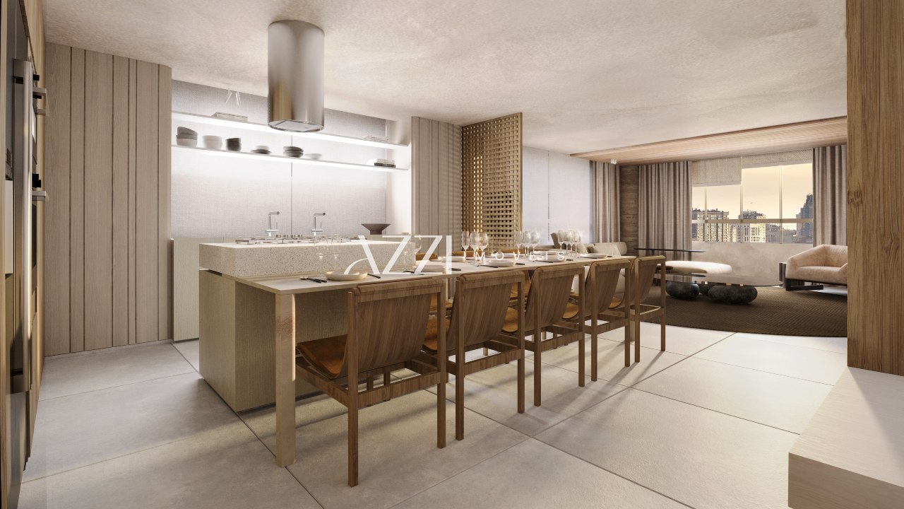Acabamento de Alto Padrão: Piso em porcelanato de grandes formatos, bancadas em granito ou mármore, metais e louças de design.